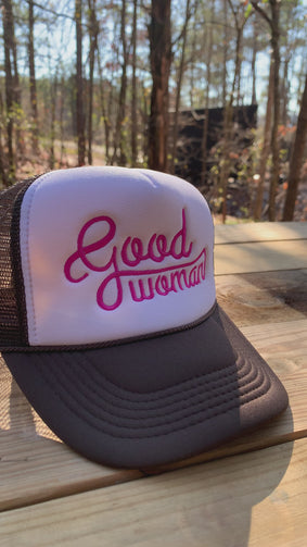 Signature Good Woman logo embroidered on the front AND Proverbs 31 embroidered on the side.